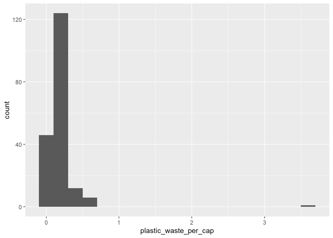 ggplot(data = plastic_waste, aes(x = plastic_waste_per_cap)) +